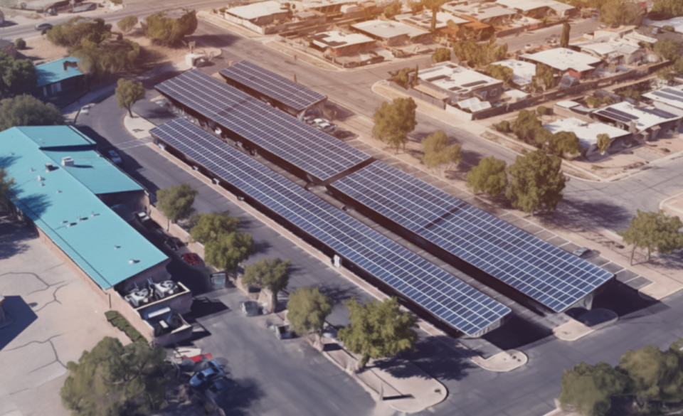 A solar carport system financed through a Power Purchase Agreement to support long-term energy savings for a public school campus in Tucson, Arizona.